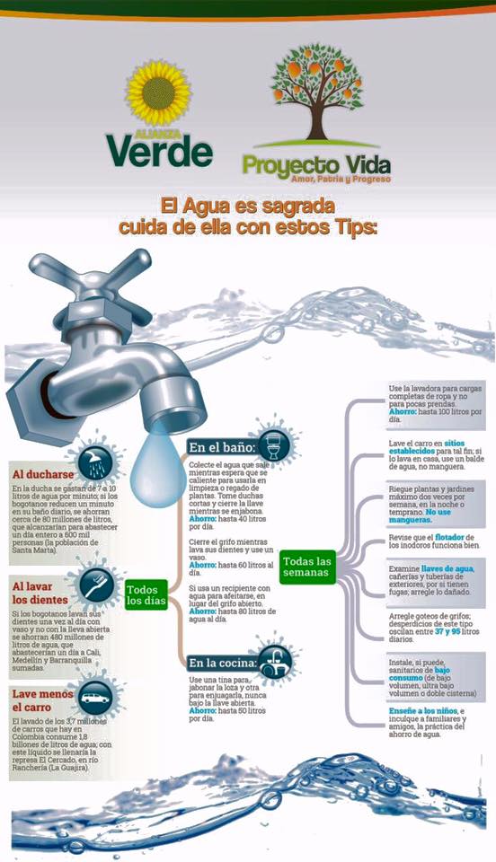 Hoy en el día mundial del agua, los dirigentes de la Alianza Verde planean en varias partes del país actividades que den muestra de la importancia de cuidar los ecosistemas y nacederos de agua, no sólo de la cotidianidad de los seres humanos y el uso irracional del elemento, sino de los intereses económicos que pretenden acaparar gran parte del territorio colombiano, así como de la minería ilegal que ha contaminado centenares de ríos con mercurio y otras sustancias tóxicas.